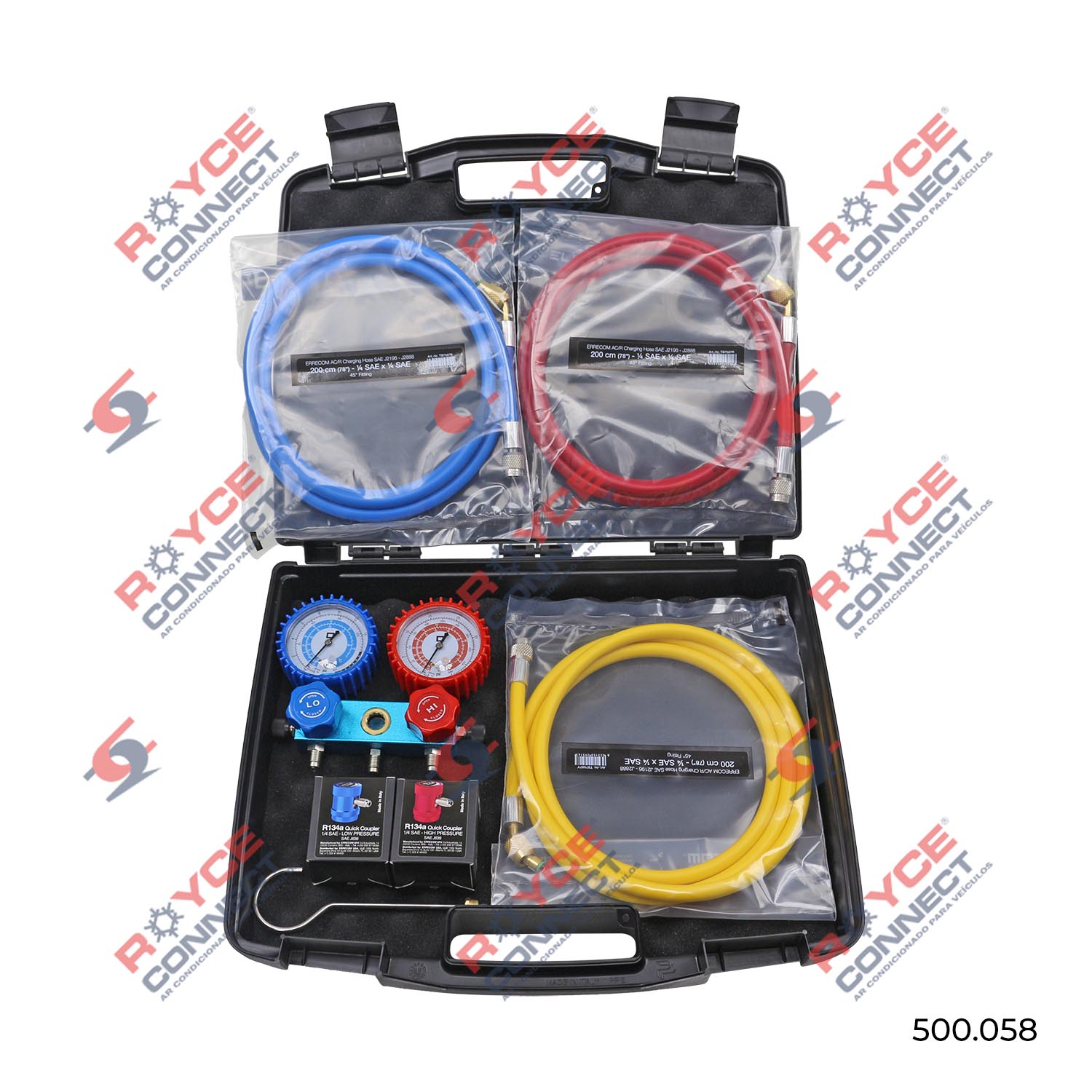Manômetro R1234YF ERRECOM com Mangueiras 2 Metros
