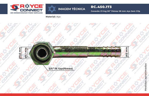 Conexão O'ring 90º Fêmea 08mm Aço S/ Clip