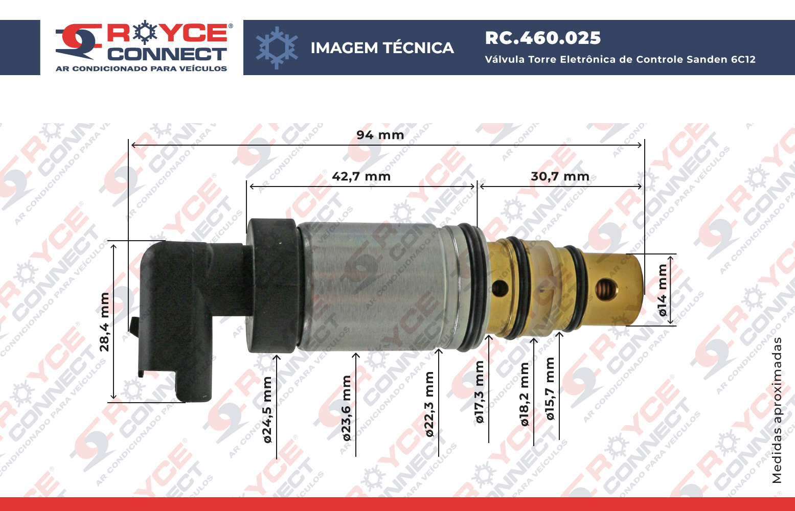 Válvula Torre Eletrônica de Controle Sanden 6C12 Citröen C4 Pallas / C5 / Peugeot / Land Rover Discovery 4 9,4m